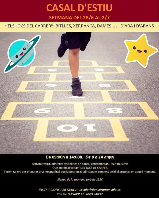 CASAL DEL JOCS DE CARRER: SETMANA DEL 28 DE JUNY AL 2 DE JULIOL. DE 9H A 14H. DE 8 A 14 ANYS