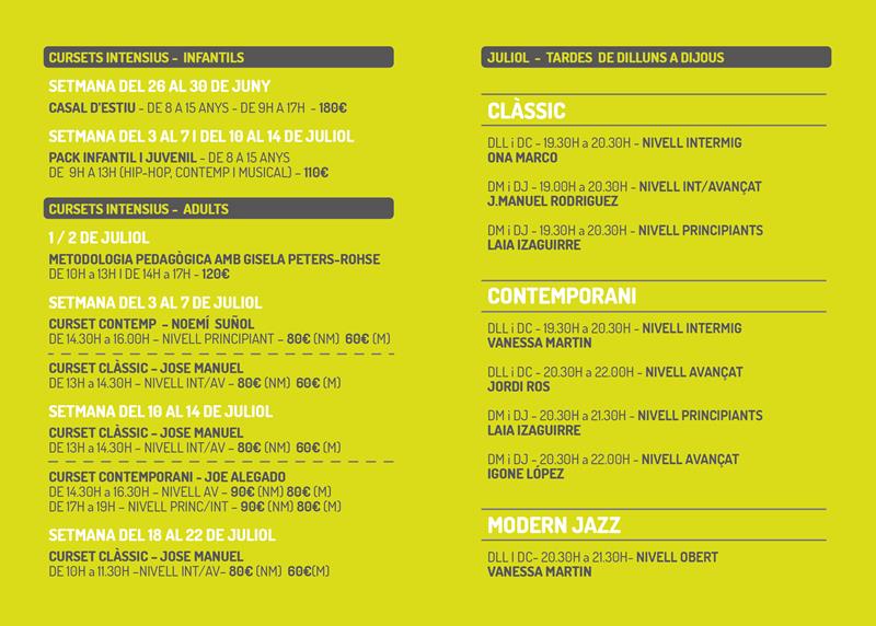 TARDES DE JULIOL CLASSES CONTINUADES PER ADULTS DE: CLÀSSIC, CONTEMPORANI I MODERN JAZZ.